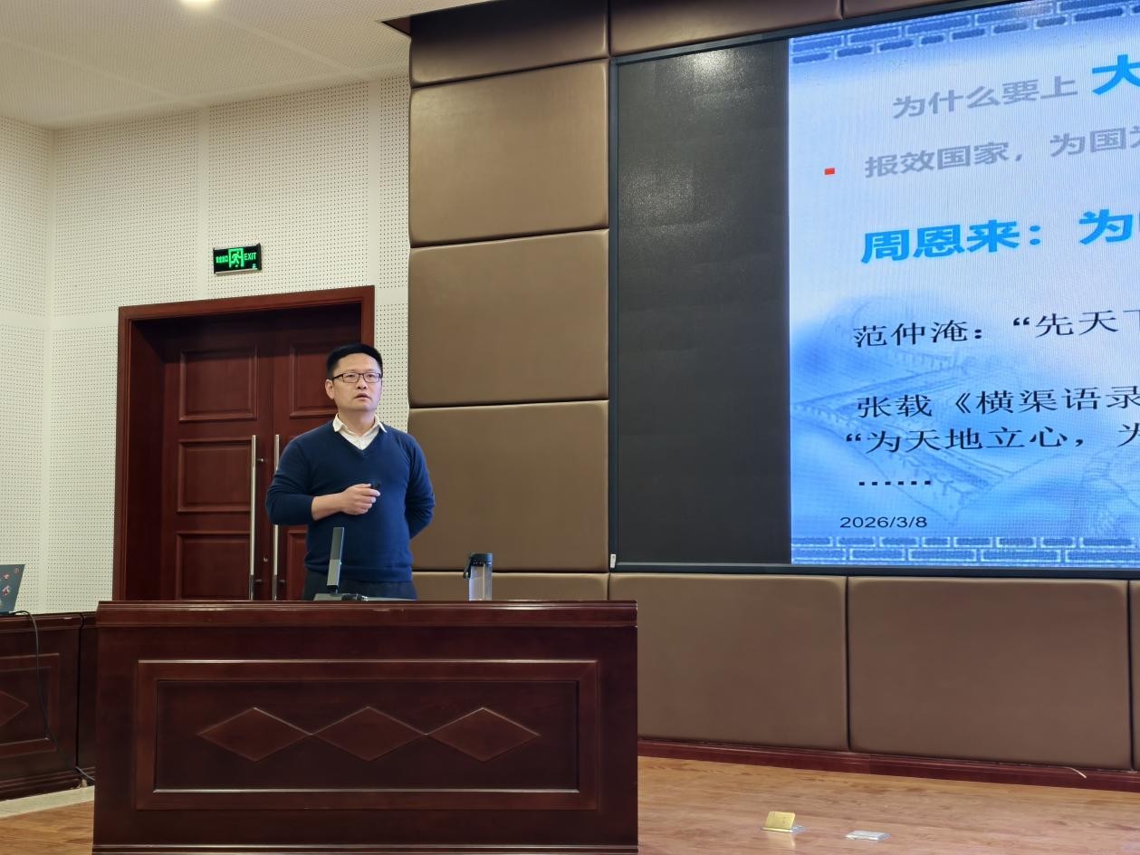 3月8日晚,材料学院2025级新学期开学第一课在煤炭二楼报告厅开讲。学院党委书记周涛结合当下快速变革、竞争激烈的社会环境,深入浅出地为新生们点明了上大学的真正价值与内涵,为同学们的大学生活指引了前行方向。
