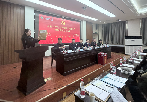 学院党委委员杨庆浩同志宣读校党委《关于材料科学与工程学院“两委会”委员候选人预备人选的批复》。