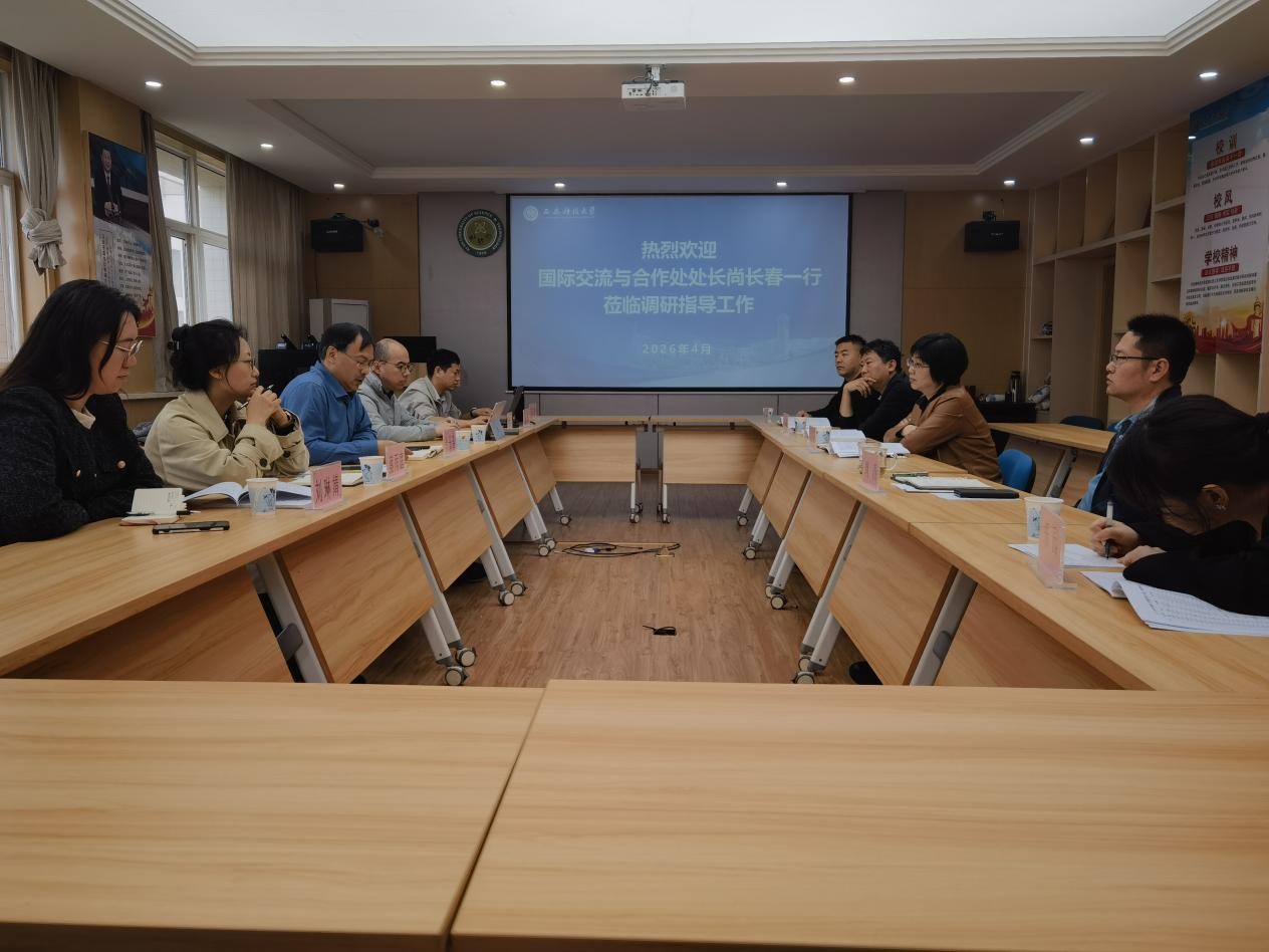 为进一步提升学院国际化办学水平,推动师生出国(境)交流与来华留学工作高质量发展,2026年4月14日上午九时,西安科技大学国际交流与合作处处长尚长春带队赴材料科学与工程学院开展专题工作指导与交流。学院院长张雅婷、党委书记周涛及学院相关工作人员出席会议。